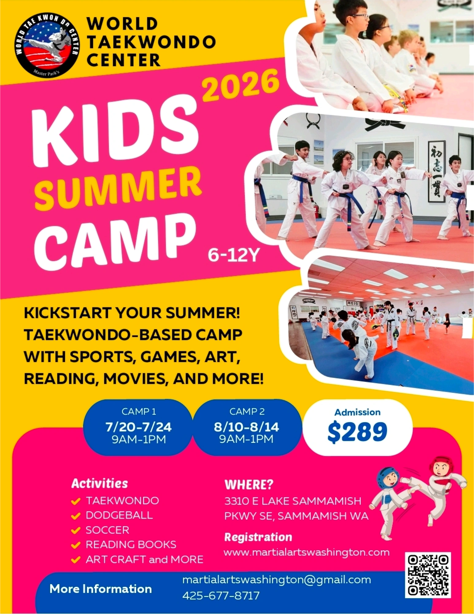 Our summer camp is the perfect combination of physical activity, personal growth, and social fun. Whether your child is new to Taekwondo or already training, they will gain valuable skills and create lasting memories!! :)
